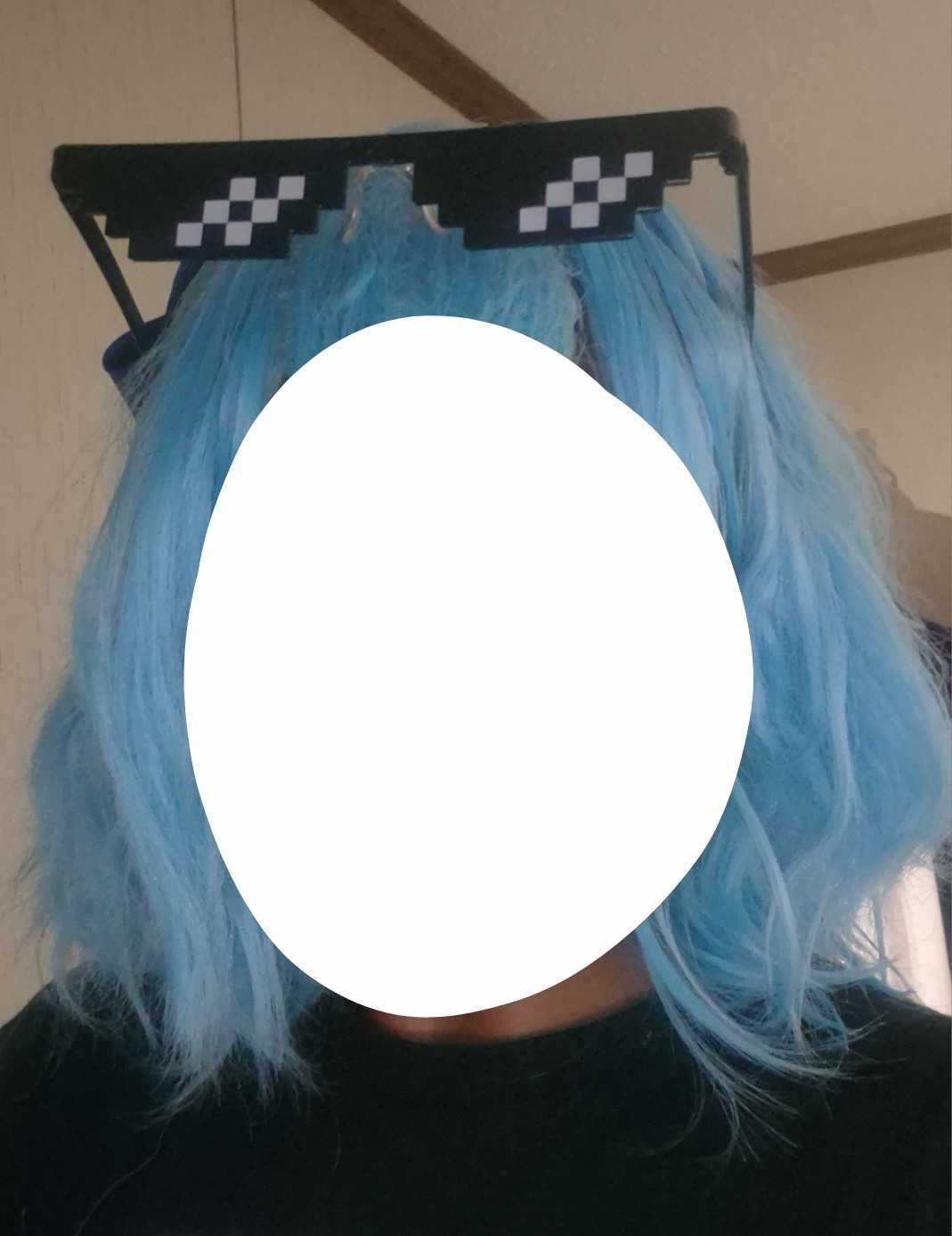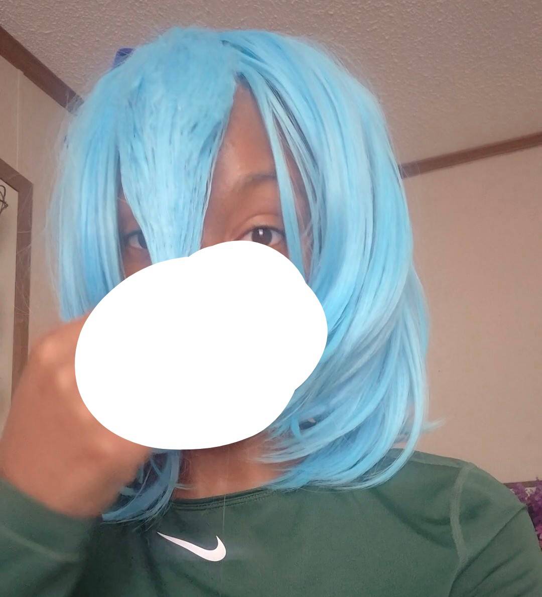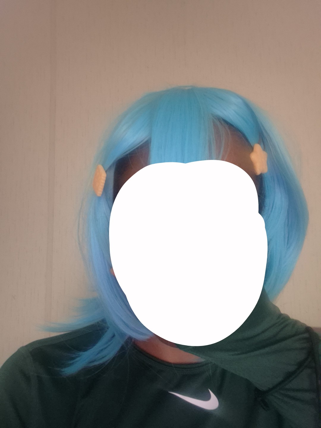 Cirno's wig was much easier as the base I purchased was shorter. I ended up having to just cut the front bangs since they were way too long.