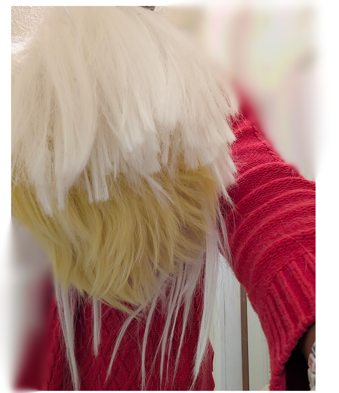 For Nitocris, I began with a long, white wig base. I have no experience styling a wig or making my own cosplay, so I actually fucked it up quite bad the first time around.