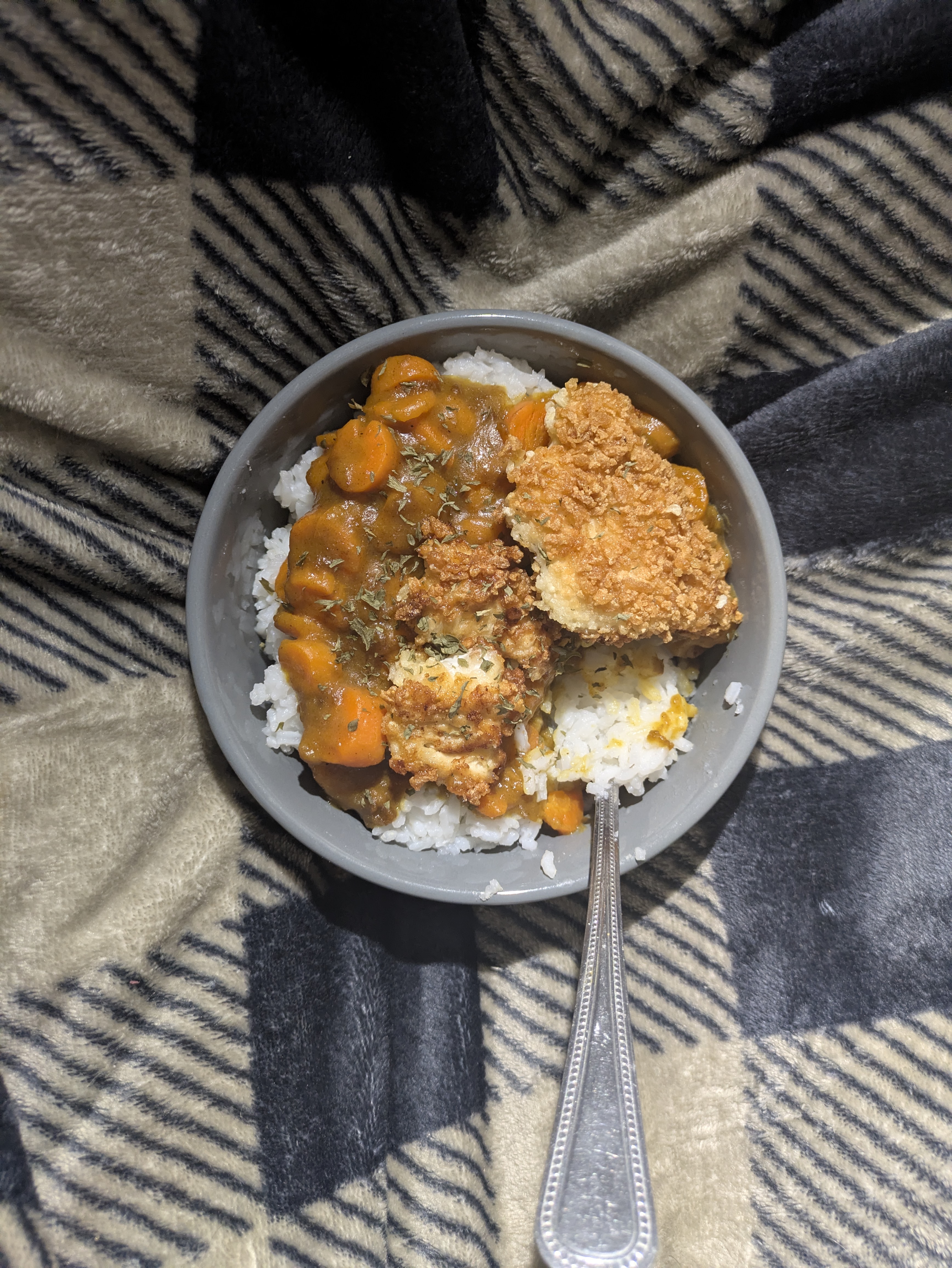 For dinner last night, I made katsu curry with carrots. (and only carrots, because we had no more potatoes in the house.)
